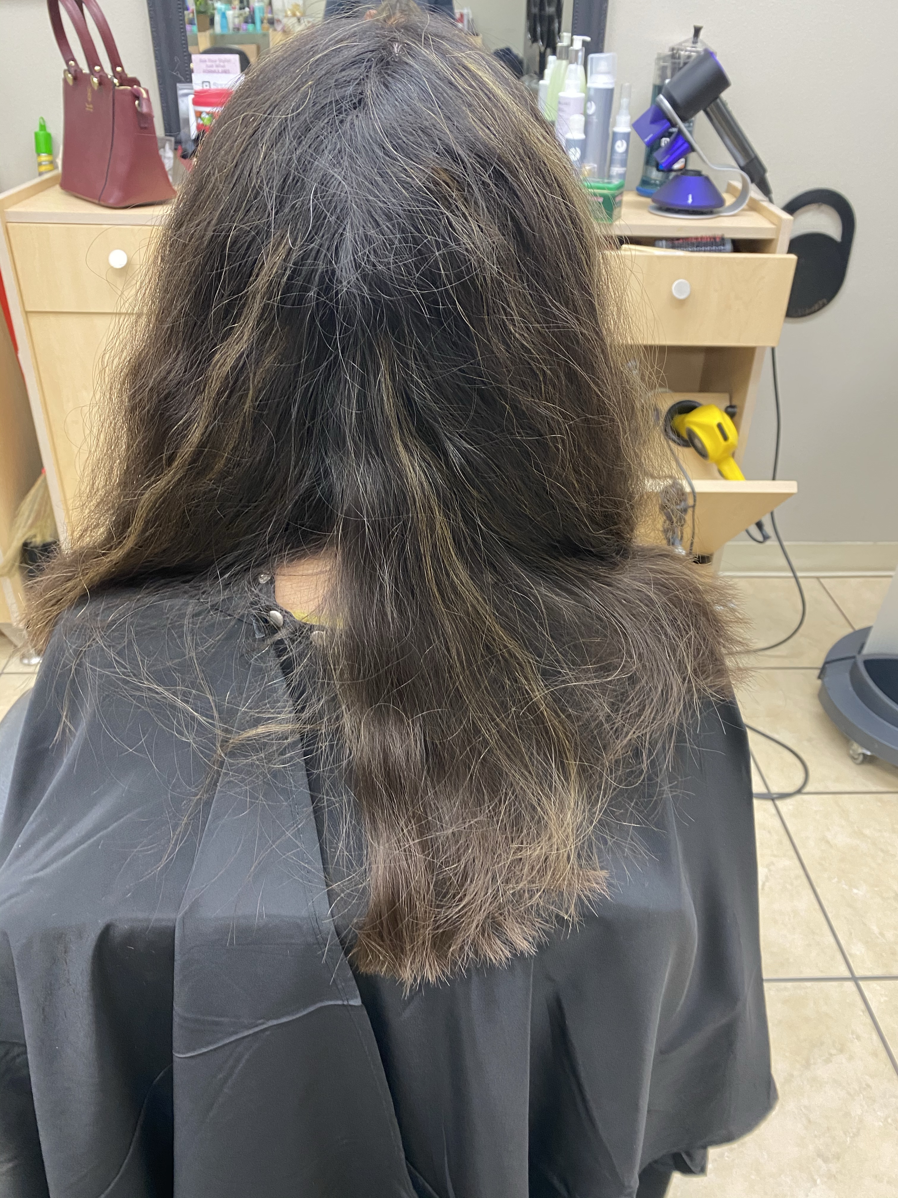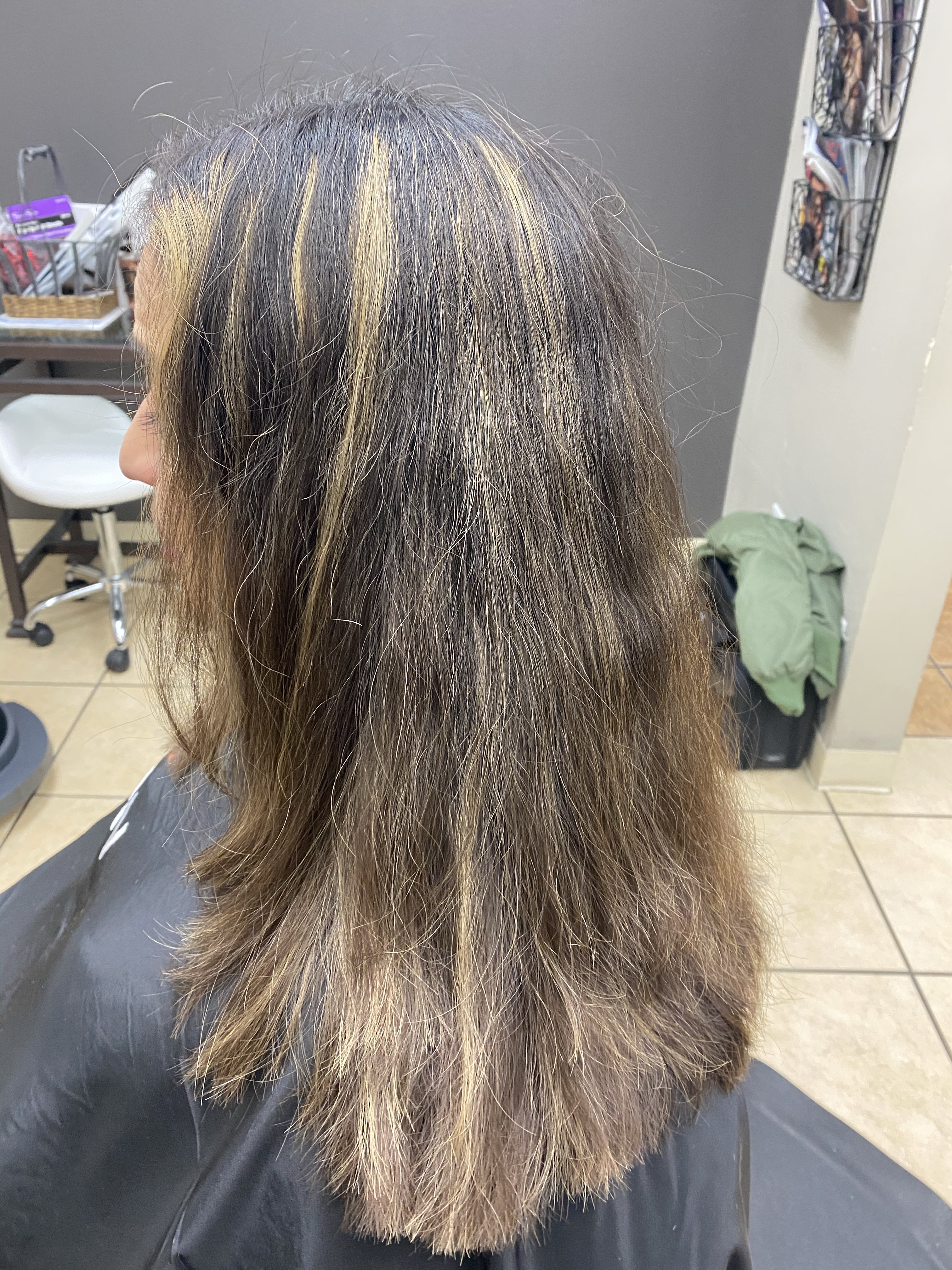 Other types of correction are when clients end up with stripes or get an affect of coloring that looks like a zebra