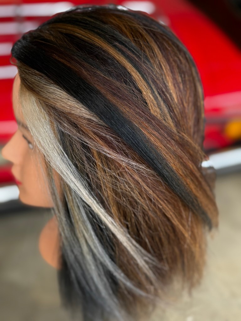 Calico hair color is a vibrant, multi-tonal look inspired by the patchy and dynamic patterns of calico cats. This technique blends multiple contrasting hues to create a visually striking, multidimensional effect. Typically, it combines warm shades such as copper, caramel, and golden blonde with deeper tones like chocolate brown or black. The key is the artistic placement of these colors to mimic the organic, irregular patches seen in calico fur.